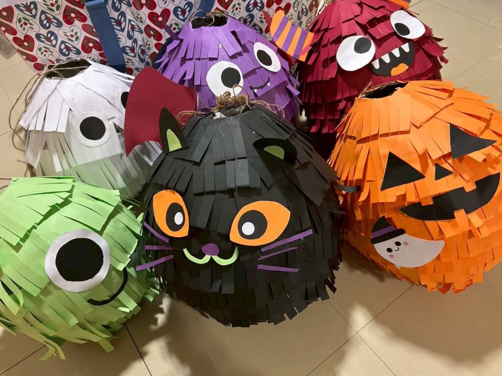 ピニャータでは、保護者の方が本気で手作りしてくださった作品に一同驚愕!その完成度の高さには「割ってしまうのがもったいない!」という声が上がるほどでした。でも、中からお菓子が出てくると子供たちは大歓声!小さな子から順番に挑戦し、みんなで協力してついに中身をゲットしました。